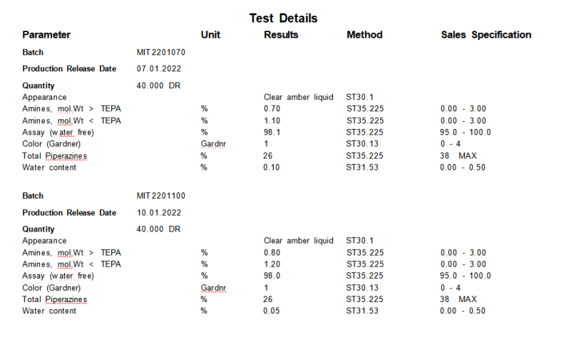 | Product:四乙烯五胺-TETRAETHYLENEPENTAMINE | CAS:112-57-2 | Inspect Date:2022.08.25. | Production Date:2022.08.25 |