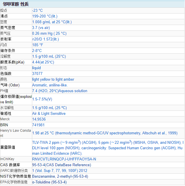 1)obtained by reduction of o-nitrotoluene. The reduction reaction can use iron powder as a reducing agent, and can also be hydrogenated in the presence of a copper catalyst at 260-280°C to obtain o-methyl Chemicalbook aniline. The content of o-toluidine in industrial products (total amino content) is above 99%, and the hydrogenation reduction method consumes 1,300 kg of o-nitrotoluene and 940 m3 of hydrogen per ton of product.