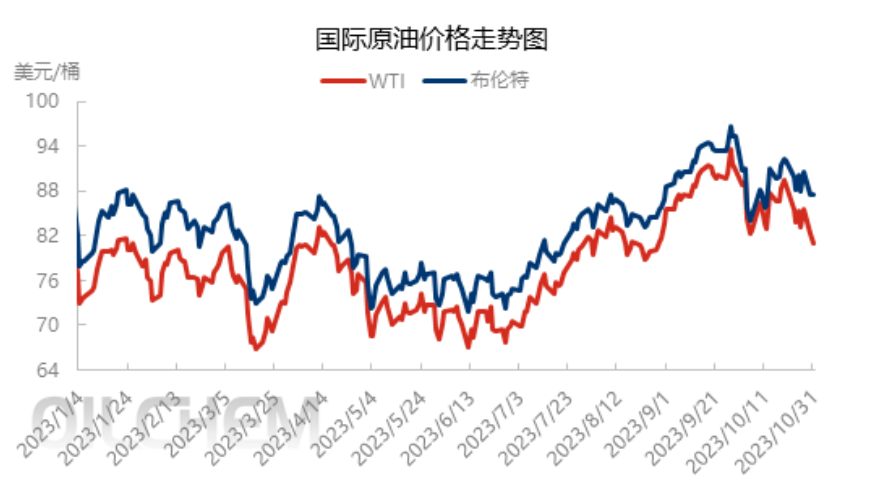 After entering October, due to the outbreak of the Palestinian-Israeli conflict, international crude oil prices rose significantly under the geopolitical risk premium, but with the conflict not affecting the output of major oil producing countries, supply risks weakened, and OPEC and the United States increased crude oil production, oil prices fell immediately. Specifically, the conflict broke out on October 7, and as of October 19, Brent crude oil futures rose by $4.23 / barrel. As of October 31, Brent crude oil futures were $87.41 / barrel, down $4.97 / barrel from October 19, erasing all gains since the Israeli-Palestinian conflict.