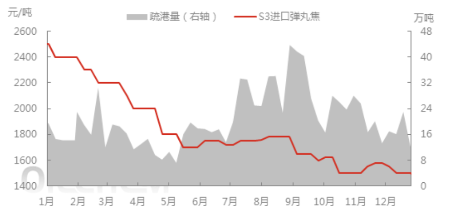 In the first half of the year, the price of imported shot coke dropped from 2,500 yuan/ton at the beginning of the year to 1,700 yuan/ton, the domestic coke price also continued to decline, the petroleum coke market downturn, the overall shipment rate of spot petroleum coke at the port slowed down, and the weekly port volume of the main port was about 100,000 to 300,000 tons. In the second half of the year, with the arrival of low-cost imported coke in the domestic market, the port spot price hedging shipments improved, and the weekly petroleum coke shipments in the main ports increased to about 420,000 tons, but the imported petroleum coke prices pushed up weak overall maintained at 1500 yuan/ton.