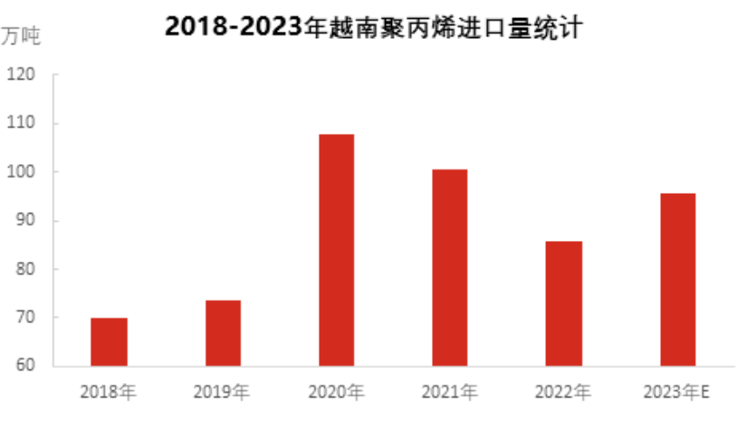 From the perspective of Vietnam’s imports of polypropylene, after rising from the import base of Vietnam’s polypropylene in 2020, it still maintains a high scale. On the one hand, it is affected by increasing trade frictions; On the other hand, to undertake a large number of Chinese industrial transfer, the following three years of epidemic on Vietnam’s demand has been inhibited. In 2023, Vietnam’s import volume maintained a high growth rate, and the import scale increased significantly.