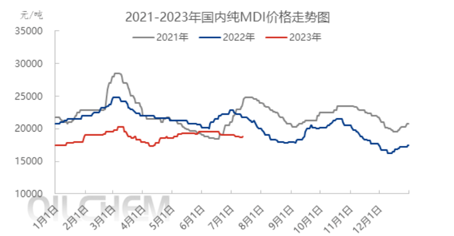 In 2023, the price of pure MDI is located at the relative position point of nearly three years, with limited overall fluctuation space. However, since mid-April, the market price of pure MDI has risen slowly and continued to maintain the relatively high price of the year, but the price is still at the low point of the same period in previous years. At this price stage, the demand side is relatively general, the order follow-up is continued, and the inventory of finished products in the early stage is digested. At this stage, social inventory continues to digest, and downstream inventory has also entered a low level.