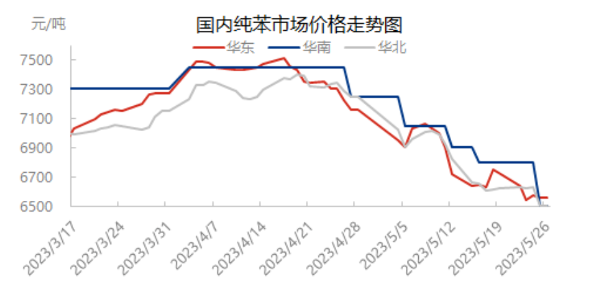 The short-term market is still under pressure, the cost of upstream pure benzene east main listed to 6500 yuan/ton. Due to the weak demand end, the pure benzene market lack of support, the recent price center of gravity fell. Short-term market temporary lack of positive boost, pure benzene market is expected to continue weak market.