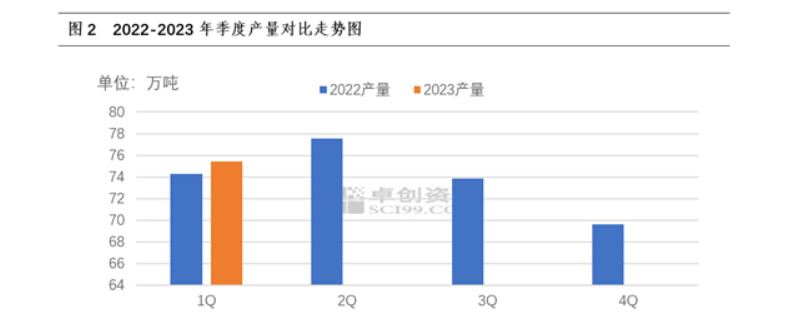 In the first quarter of 2023, domestic aniline production was about 754,100 tons, increasing by 8.3% quarter-on-quarter and 1.48% year-on-year. Despite the increase in supply, the 400,000-ton/year MDI unit of Wanhua in downstream Fujian Province was put into operation in December 2022, which gradually turned into normal after the first quarter. Meanwhile, the 70,000-ton/year cyclohexylamine unit of Wanhua in Yantai began trial operation in March. After the new production capacity was put into operation, the demand for raw material aniline in downstream increased significantly. Resulting in the first quarter of the overall aniline market is still in tight supply situation, and then have a strong support for the price.