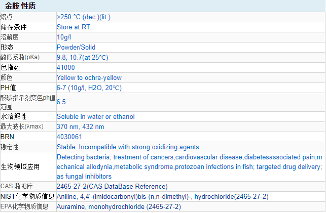 Synonyms: PYOCTANINUMAUREUM;PYOCTANUNUMAUREUM;PYOKTANINYELLOW;PYKOTANNIN;AURAMINEO,ChemicalbookCERTIFIED;AURAMINEO,CERTIFIED(C.I.41000);AURAMINEO,FORMICROSCOPY;BASICYELLOW2.