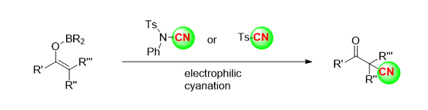 Kensuke Kiyokawa’s team [4] used cyanide reagents n-cyano-n-phenyl-p-toluenesulfonamide (NCTS) and p-toluenesulfonyl cyanide (tscn) to achieve high-efficiency electrophilic cyanidation of enol boron compounds (Figure 3). Through this new scheme, various β- Acetonitrile, and has a wide range of substrates.