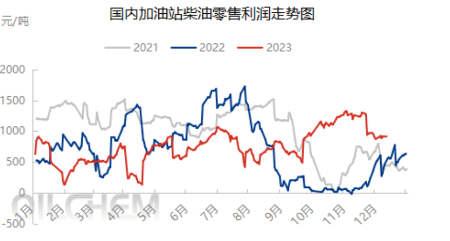 2023 diesel cracker price spread is still higher than the same period last year for most of the time, starting in September with the decline in market prices, the cracker price spread began to fall, retail profits on the contrary, since 2023 domestic diesel production and retail profits how to transmit? How will the future evolve?