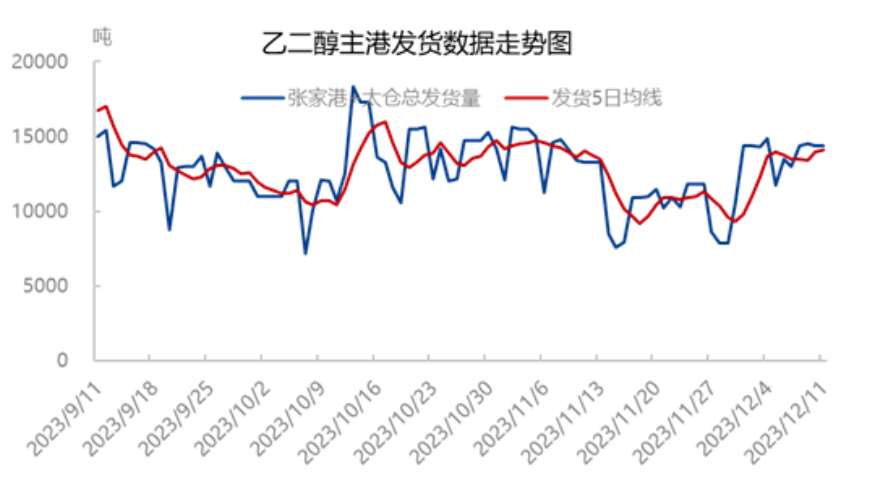 From the delivery data point of view, after December, the main port delivery data showed a good state, continued to maintain at the level of 13,000 tons/day, the delivery data improved, indicating that downstream factories are more recognized for the current price of ethylene glycol, the willingness to receive goods has increased, from the delivery data performance, confirmed the downstream polyester construction optimistic situation.