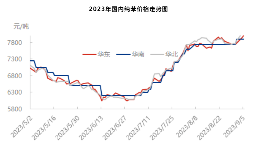 On the evening of September 5, Saudi Arabia and Russia voluntarily extended production cuts to the end of the year, unexpectedly extending production cuts for 3 months exceeded market expectations, and international crude oil prices once again broke through a new high. Stimulated by the continuous rise of crude oil, superimposed multiple sets of downstream plans for new investment and gold nine silver ten chemical and gasoline market demand to stimulate the pure benzene market, pure benzene market quickly rose to a high, giving styrene strong support.
